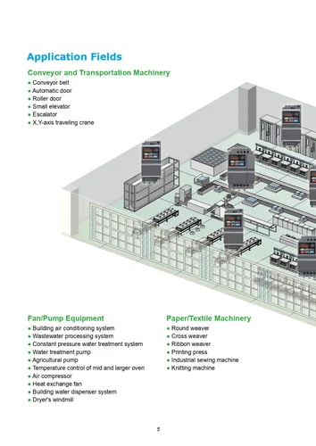 Applications: Smaller cranes; washing machines; treadmilsl; robot arm of injection machine (clamp); elevator; grinding machine; drilling machine; wood machine; webbing loom; air conditioner for large buildings; water supply system for large buildings, etc.