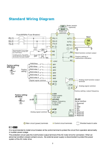 Specifications: Supports IM / IPM /SPM motors and VF / SVC control,Dual rating design:-Normal Duty (ND), 120% for 60 seconds or 150% for 3 seconds.-Heavy Duty (HD), 150% for 60 seconds or 200% for 3 seconds.Up to 200% rated starting torque at 0.5 Hz,2 set of motor parameter for multi-motor control,Supports high speed pulse and PWM signal input,Built-in single /multi-pump function,Built-in braking choppers for the entire series,100% PCB coating for circuit(IEC 60721-3-3 class 3C3) for harsh environment.