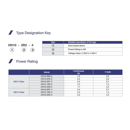 - HH10-0R7-2 : 0.7KW Single Phase,