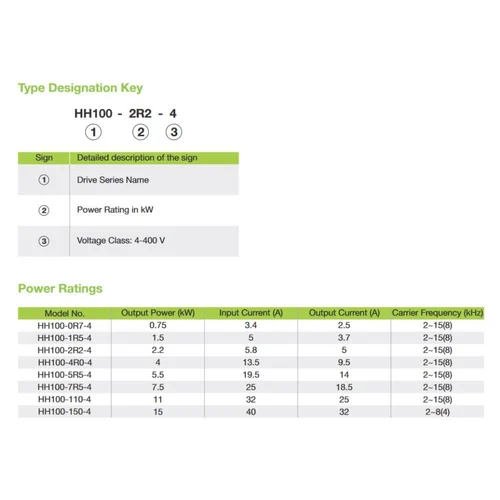 - HH100-2R2-4 : 2.2KW Three Phase,