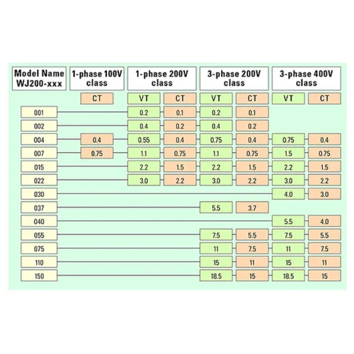 Hitachi WJ200 Series AC Variable Frequency Drives are available in 200 & 400 V Class and single phase input to three phase output.